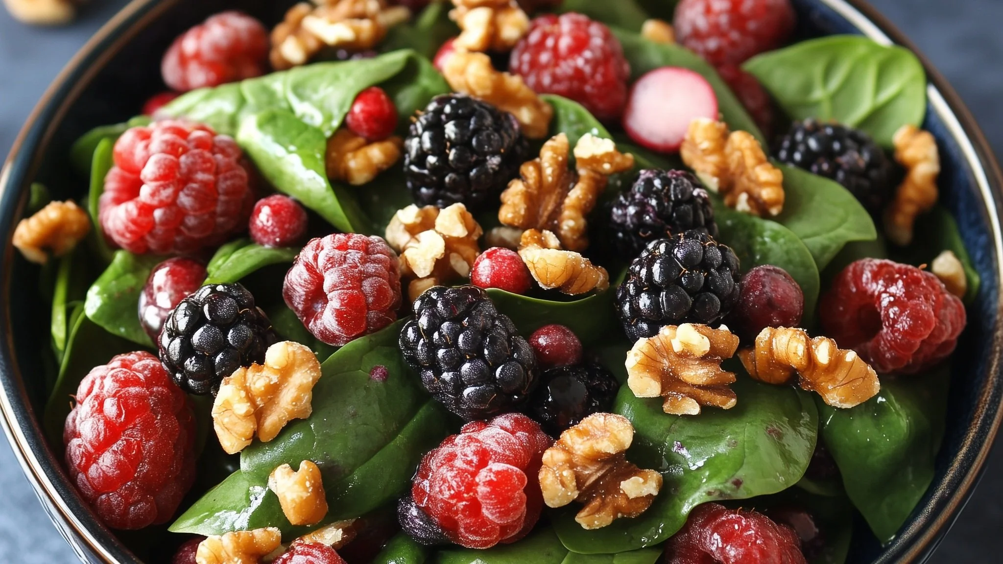 Summer Berry Spinach Salad with Crunchy Walnut Vinaigrette